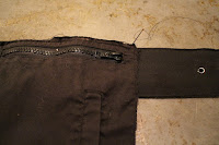 2. Cut out a pocket from the jacket and sew onto the belt.